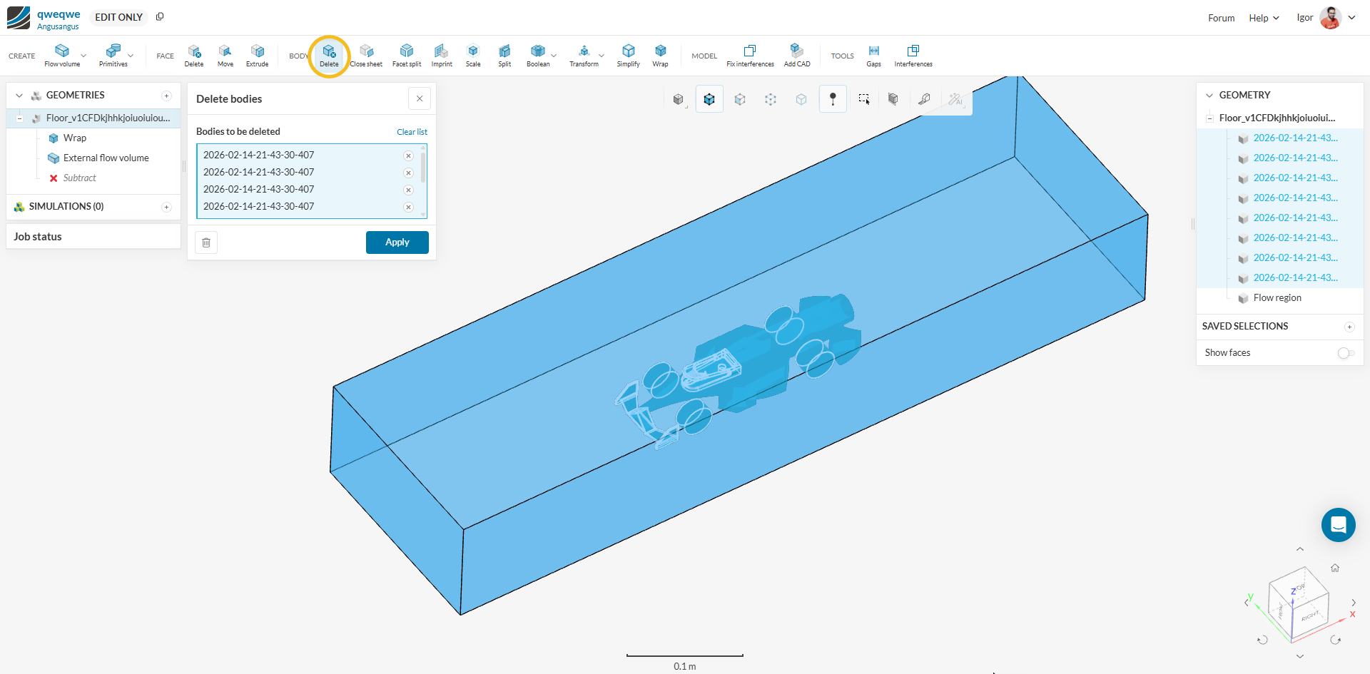 Now, the correct workflow to remove the solid parts to run the simulation is to use the “Delete body” feature instead: